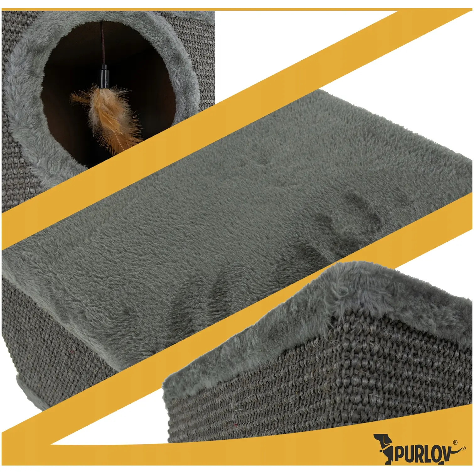 ✅ Drapak PURLOV ma ścianki wyłożone mocnym sizalem, który jest naturalny, bezpieczny i wyjątkowo odporny na intensywne drapanie. Kot może korzystać codziennie, a materiał przez długi czas zachowuje swoje właściwości.