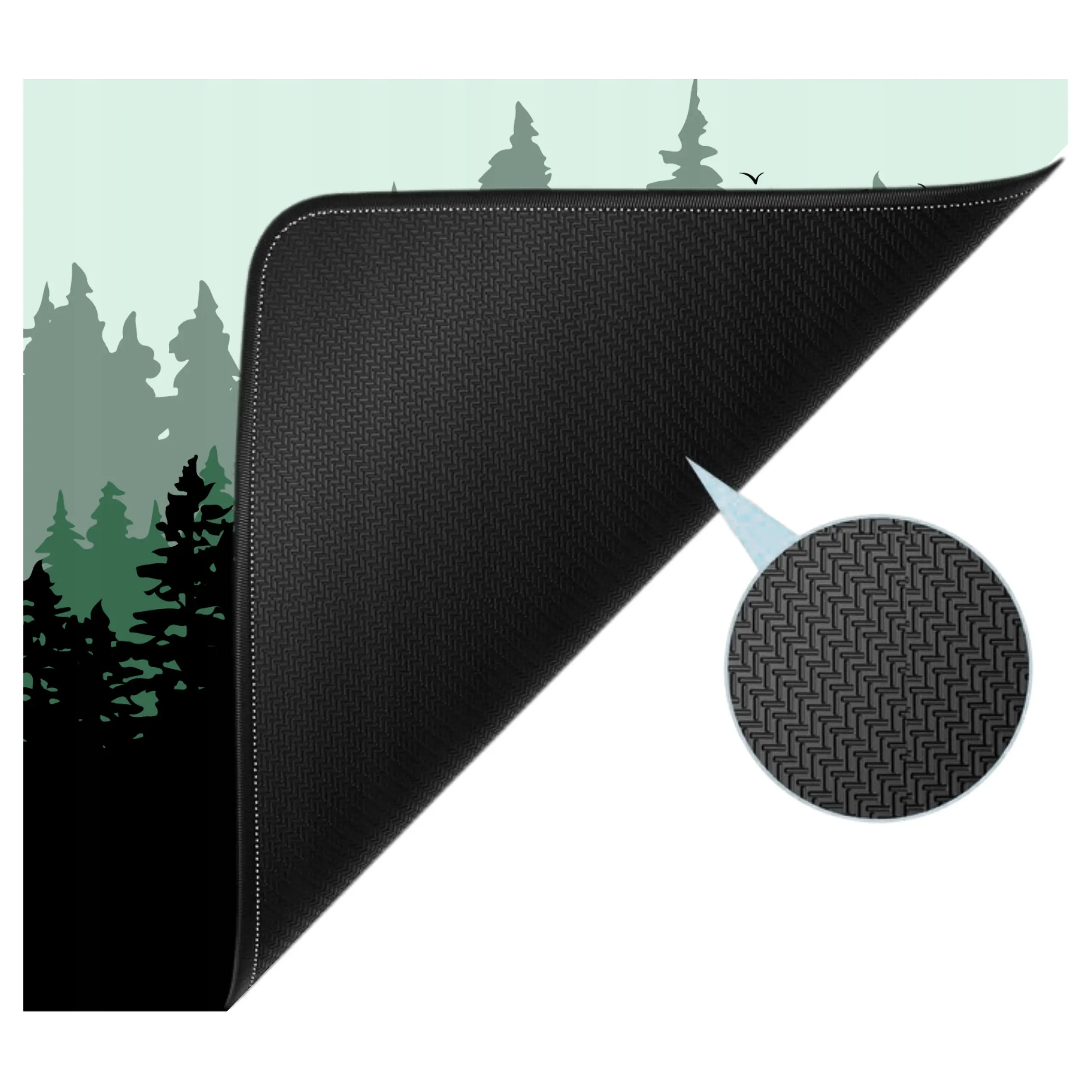 Podkładka wyróżnia się unikalnym leśnym motywem, który przenosi użytkownika w świat natury. Detale drzew, liści i subtelne odcienie zieleni tworzą atmosferę, która sprzyja relaksowi i koncentracji podczas intensywnej gry.