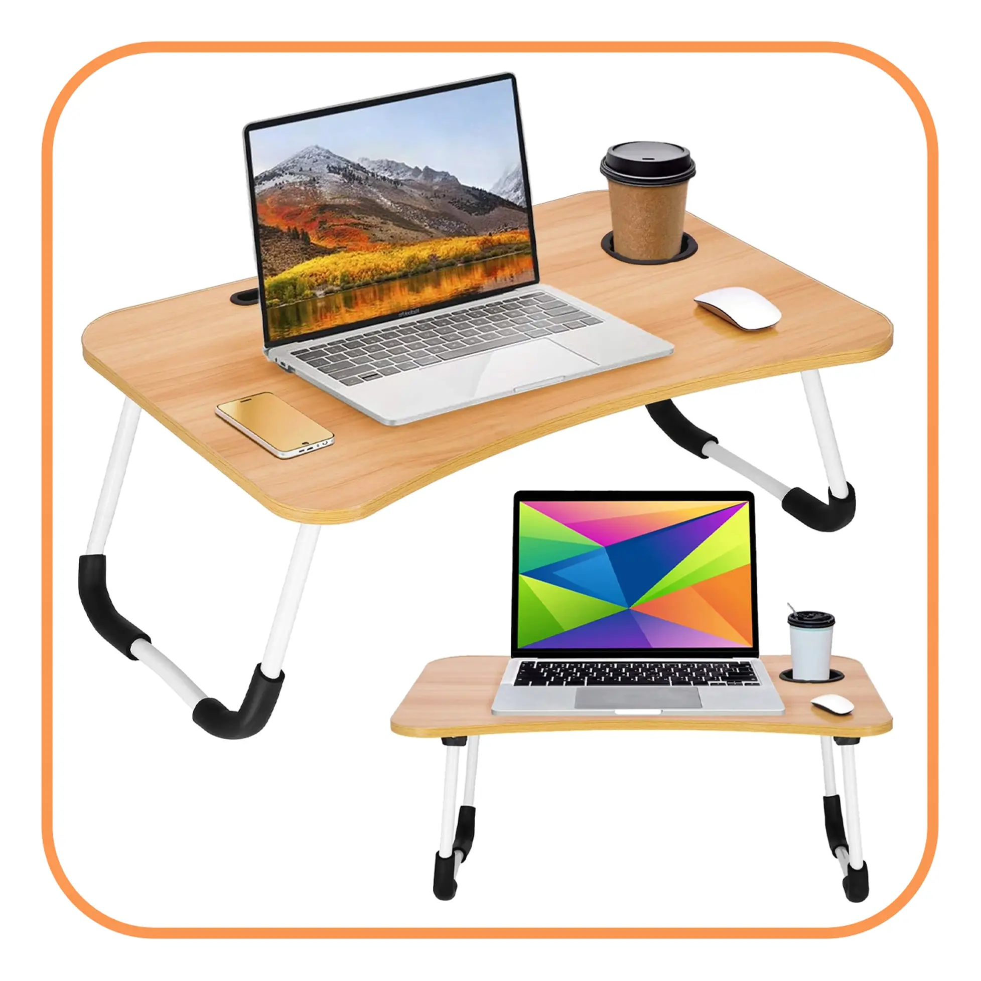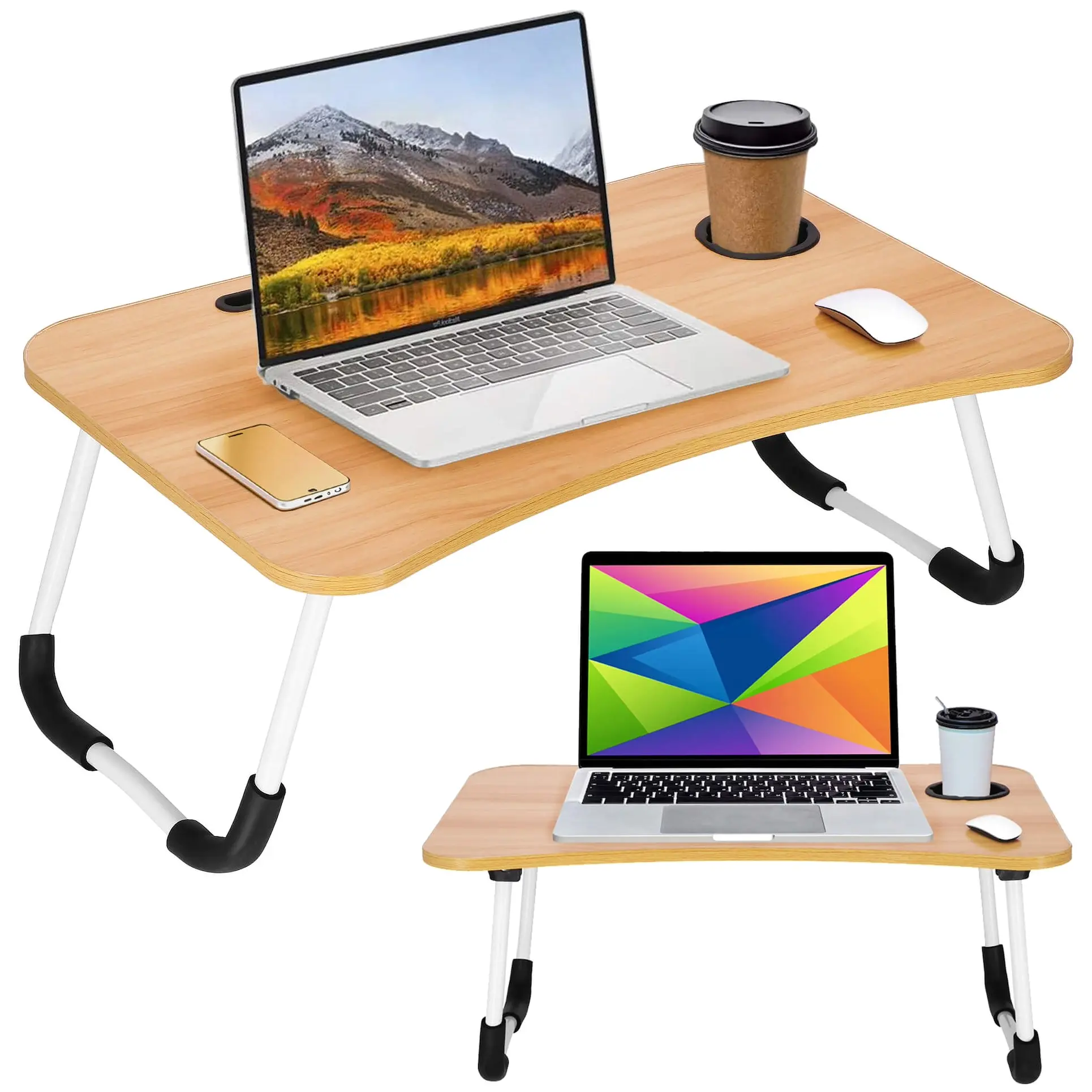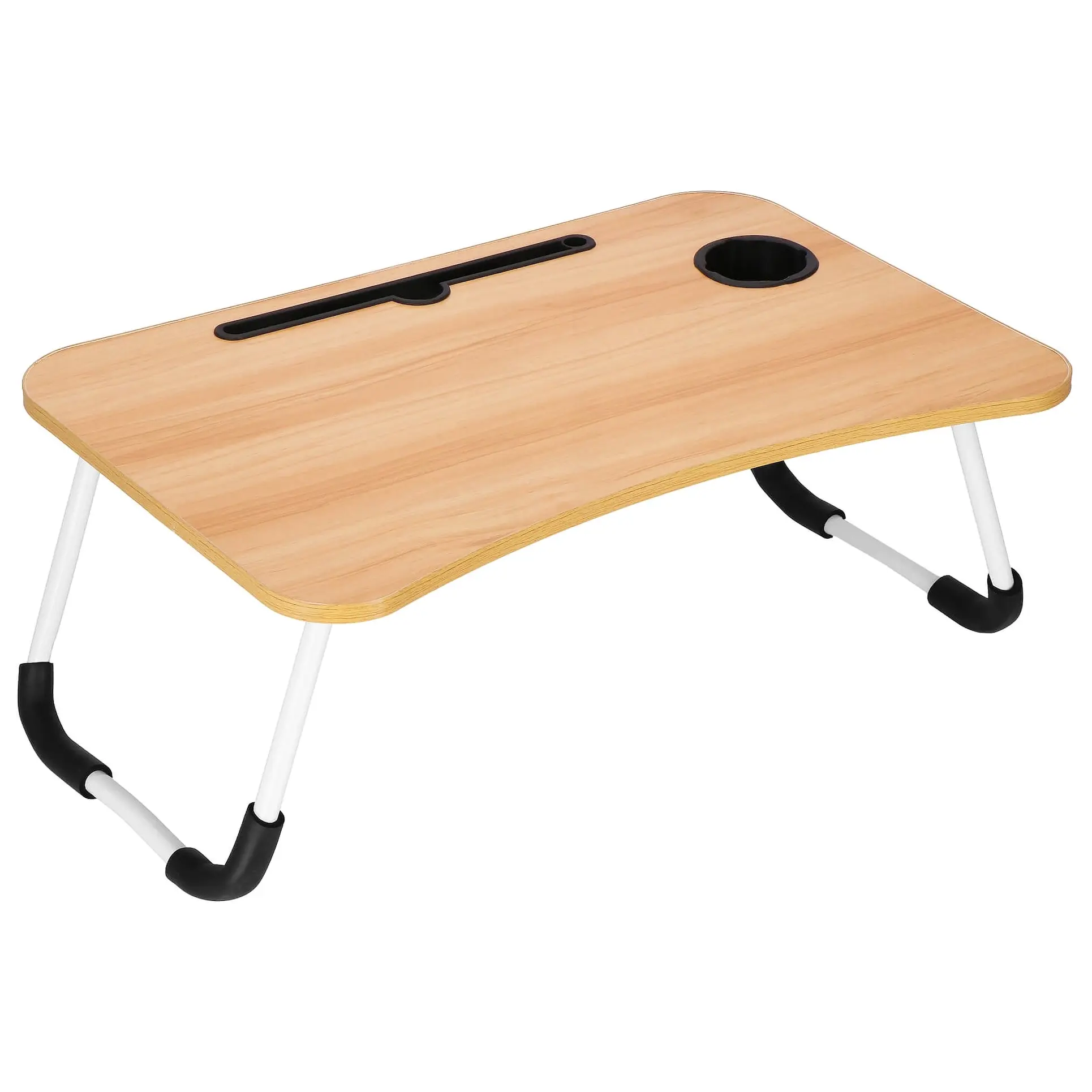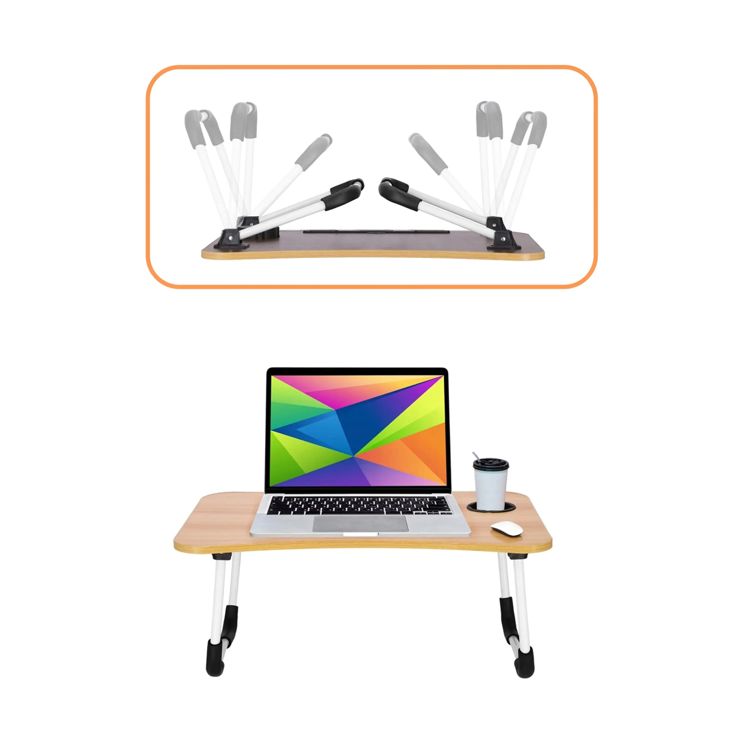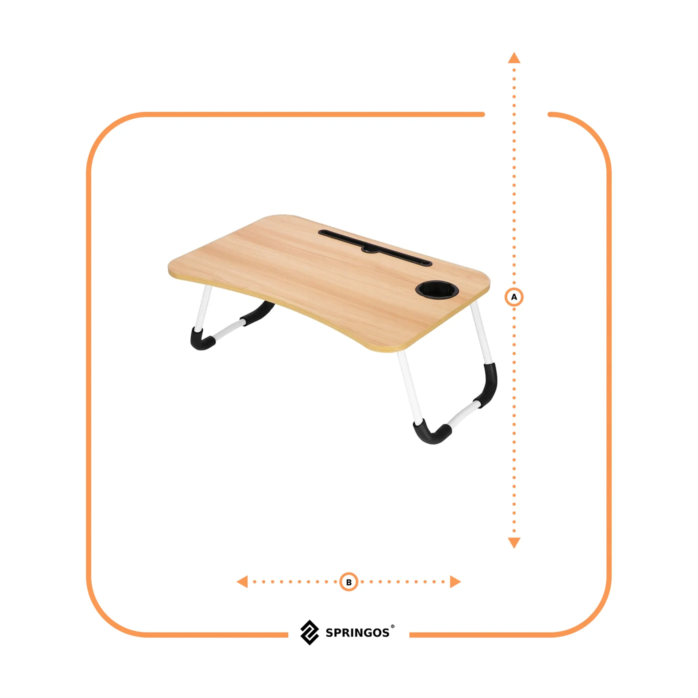 Marka: Springos® | Typ: Składany stolik pod laptopa | Kolor blatu: jasny brąz, imitacja drewna | Kolor nóżek: biały z elementami czerni
