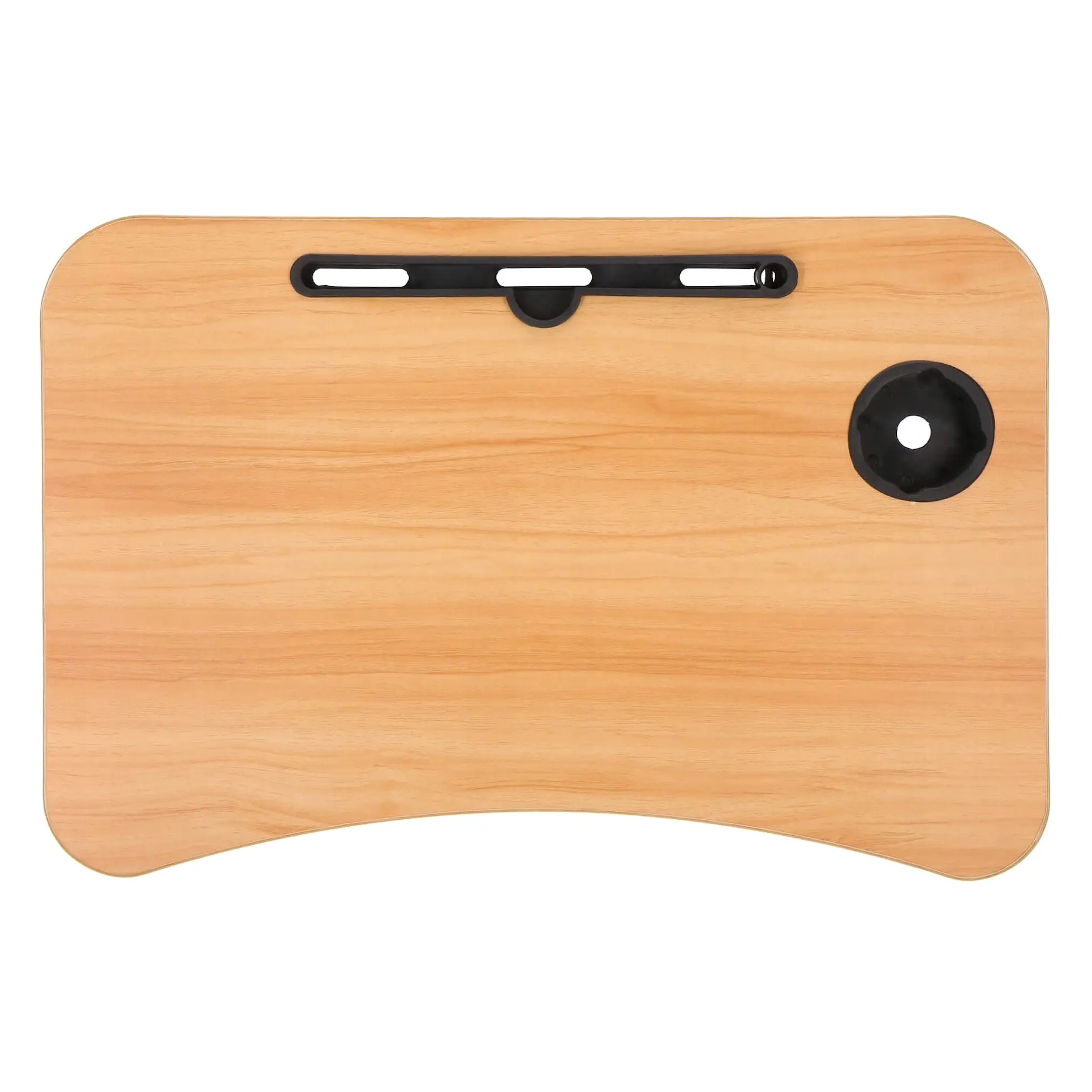 Stolik pod laptopa z przestronnym blatem został wyposażony w specjalne miejsca na tablet/telefon, w którym możesz bez problemu postawić urządzenie w pionie, bez obawy, ze się przewróci czy spadnie oraz specjalne wgłębienie na kubek, które zabezpiecza przed niechcianym wylaniem płynu na stojące obok urządzenia.