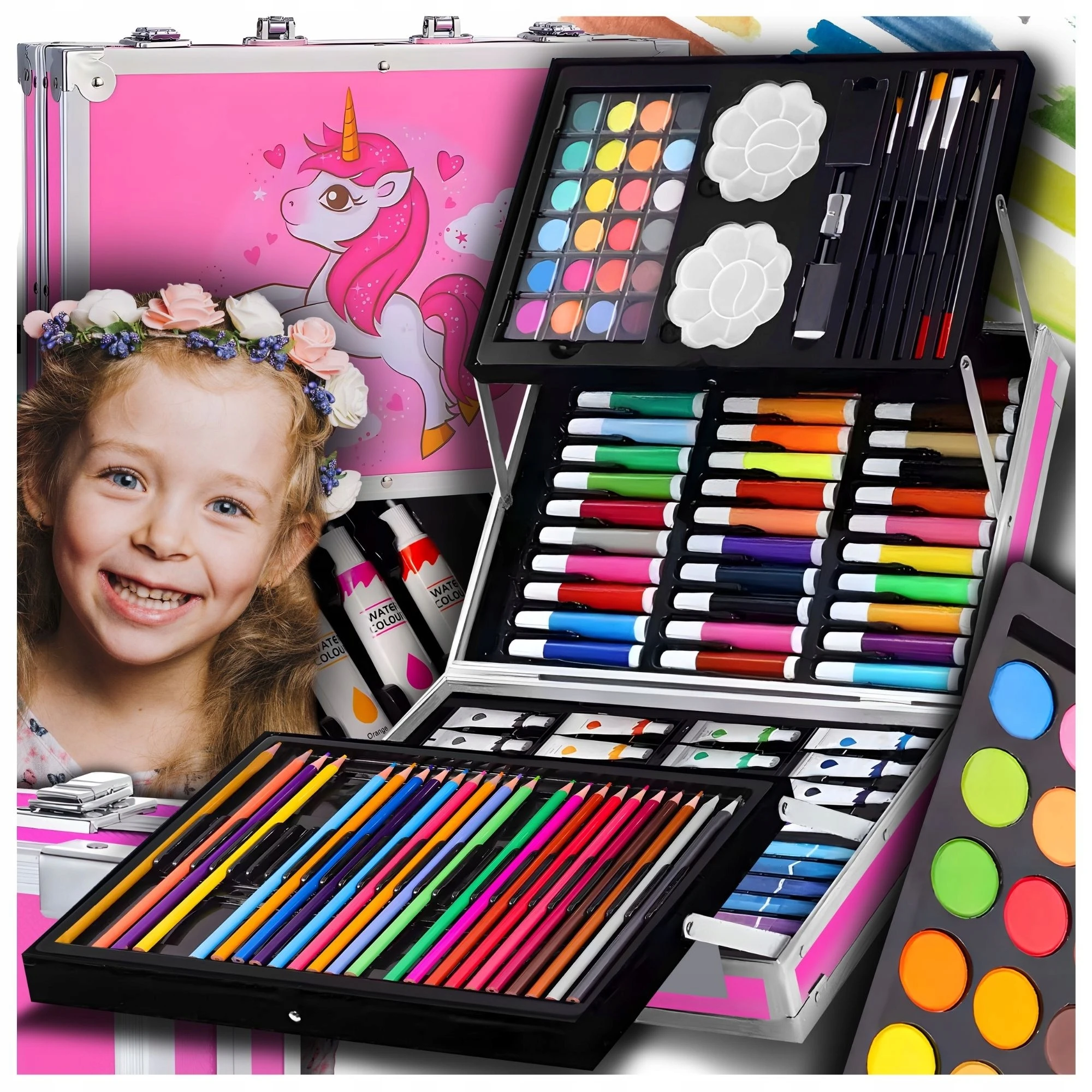 - 1 x 145 elementowy Zestaw do malowania Unicorn zamknięty w walizce